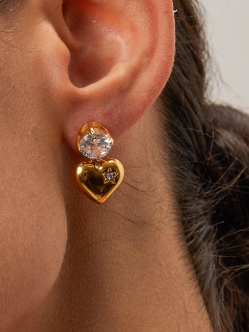 Heart Drop Stud Earrings - 18K Gold Plated & Waterproof